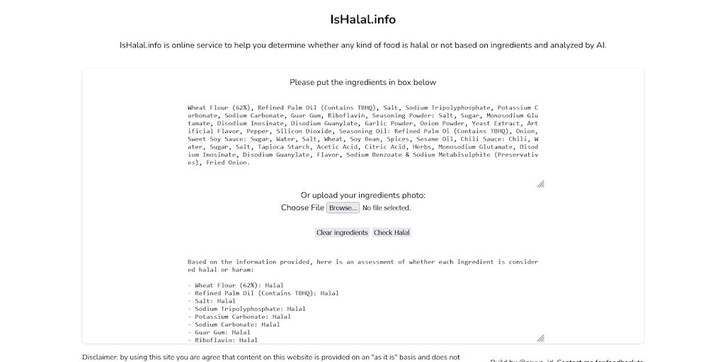 IsHalal.info - Check ingredients halalness of food using AI | Product Hunt