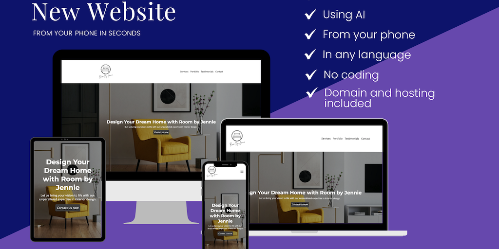 Create a complete website, with images and text, using AI. Domain and hosting is included and you can generate, edit and publish from your phone or computer. It's free to generate and edit and no logi