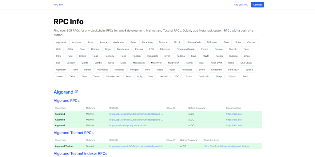 RPC Info - Free Blockchain RPCs for Web3 Users and Devs! | Product Hunt