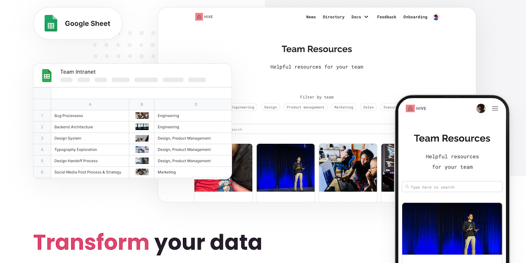 Today we are excited to announce a new data source integration in Softr: Google Sheets. You can now turn your spreadsheets into powerful and beautiful custom software - portals, internal tools, and mo