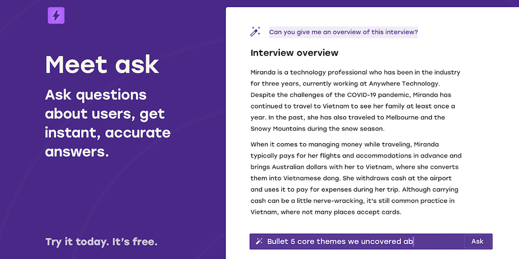 What if you could instantly get answers to any question you have about your users, and how they interact with your product? With our latest feature, Ask, you don't have to imagine anymore. Ask questio