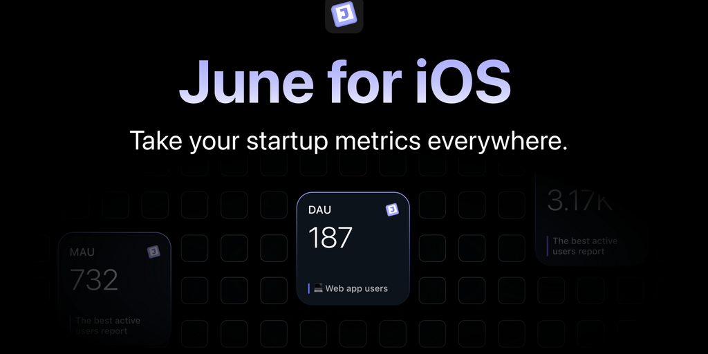 Introducing June for iOS. The easiest way to take your startup metrics, on the go 🏃♂️ ⚡️ Fast and easy to set up (< 2 minutes) 👶 No expertise required 📚 Out-of-the-box templates 📱 iOS widget for iPho