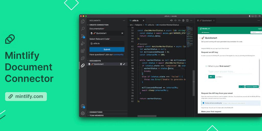 Engineering problems that might be relatable 🙅♀️ No one updates documentation 🔍 No one knows where the documentation is Bring documentation to where you work inside your IDE using Mintlify's Document