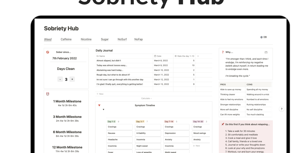 Sobriety Hub - Digital dashboard designed to help you become or stay sober | Product Hunt