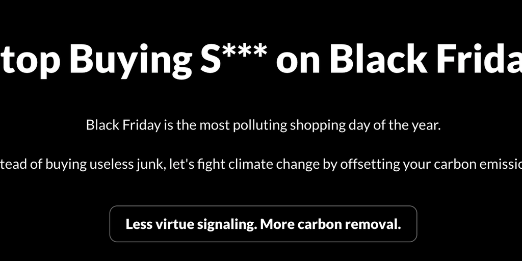 Black Friday is the most polluting shopping day of the year. Instead of buying useless junk that fills up a landfill, let's fight climate change by offsetting your carbon emissions. Choose from verified carbon removal projects and contribute today.