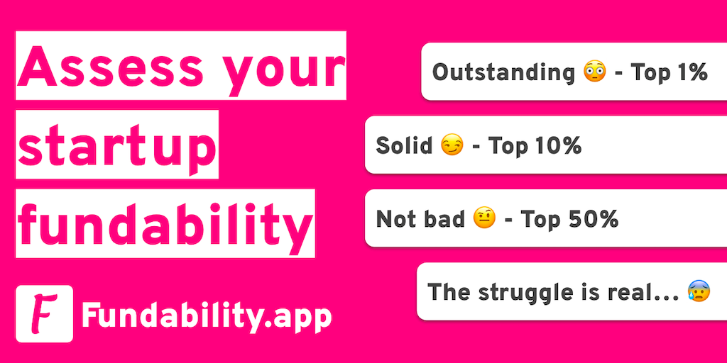 Find out how fundable your startup is! Fundability.app is a 7-min assessment that tells you how fundable your startup is. Completely free, of course. Whether you're raising from angels or VCs, get a f