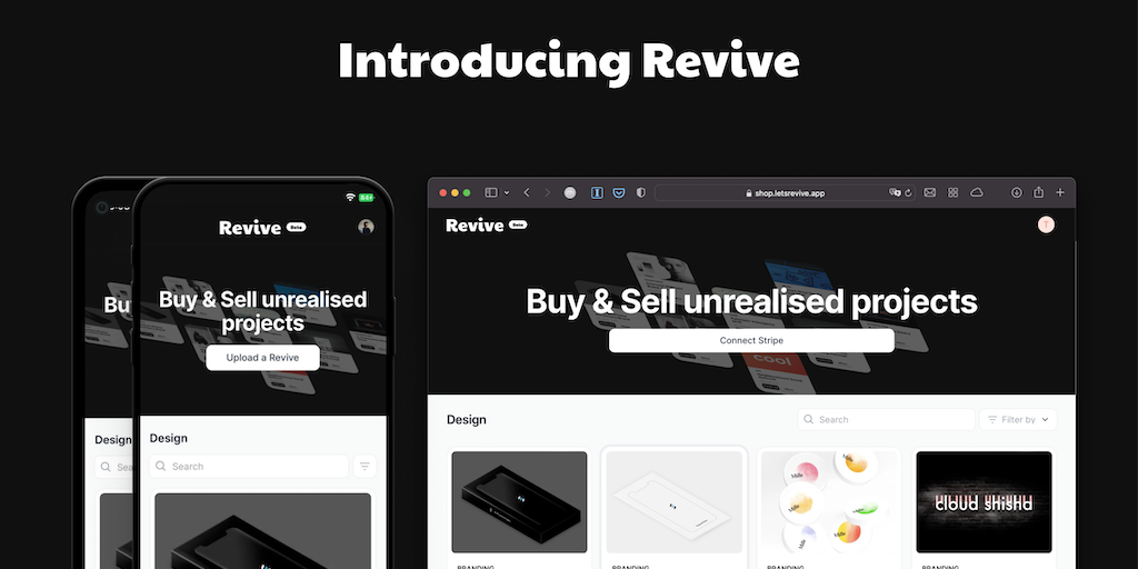 Introducing Revive, a marketplace where people can buy & sell unrealised projects. Worked hard on something and it didn't work out? Sell it! Need a new idea fast? Buy it!