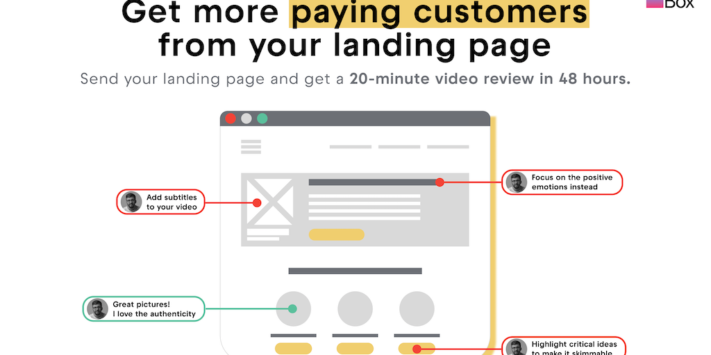 Get more paying customers from your landing page. Send your landing page and get a 20-minute video review in 48 hours. Personalized and private. Understand what’s working and what should be improved.