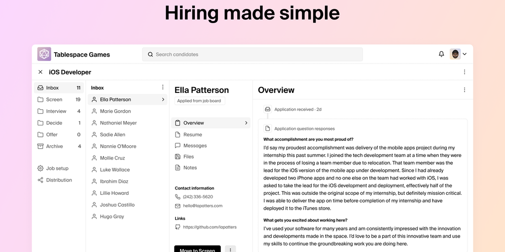 Polymer combines a no-code job board with a powerful applicant tracking system to create a seamless hiring solution for growing teams. It's packed with features that help you build, manage, and execut