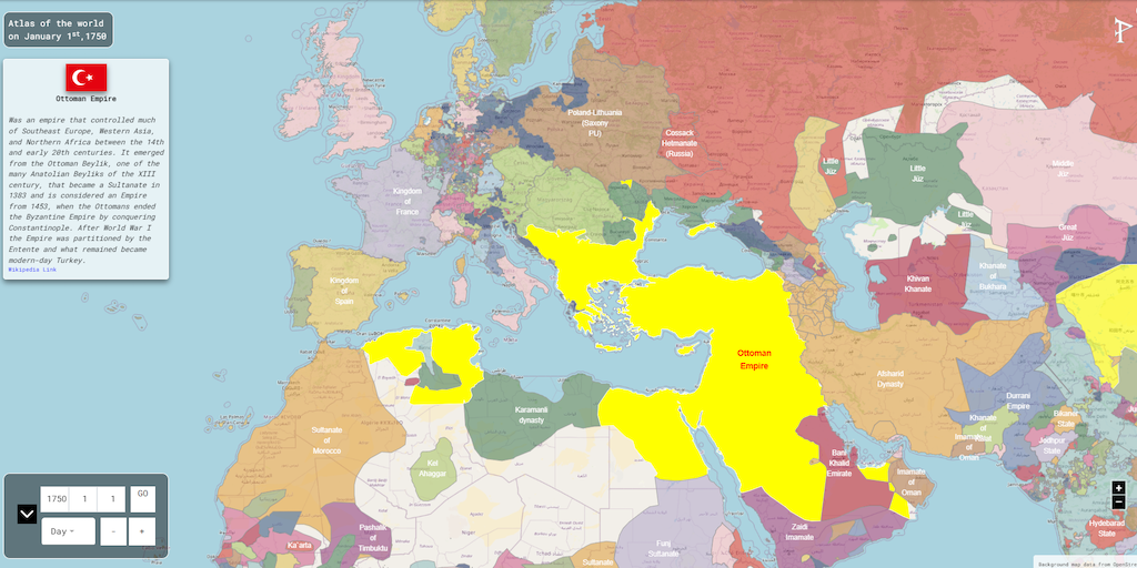 An interactive historical atlas covering the history of the world, day by day, from 3499 BC to 2022 AD. It includes more than 4 million intriguing statistics (maps, time series, timelines) and summari