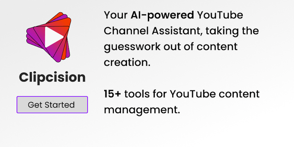 Growing on YouTube is hard, but it doesn't always have to be. Clipcision helps creators with content ideation & management, giving them tools that saves time & produces quality results. Expand your au