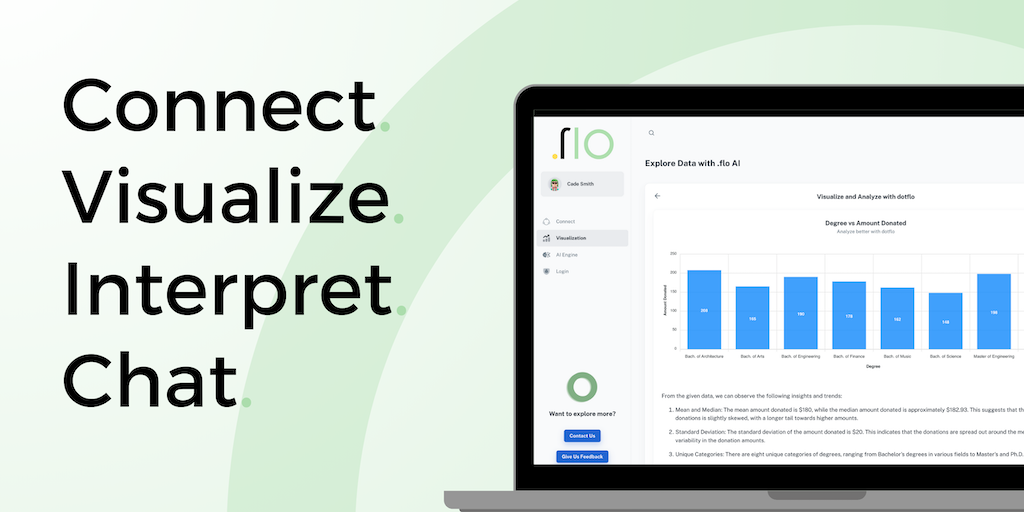 Dotflo acts as your co-pilot to understand, visualize, interpret, and talk to your data. We currently are hyper-focused on serving non-profits in targeting the right donors to help them raise more. Ou