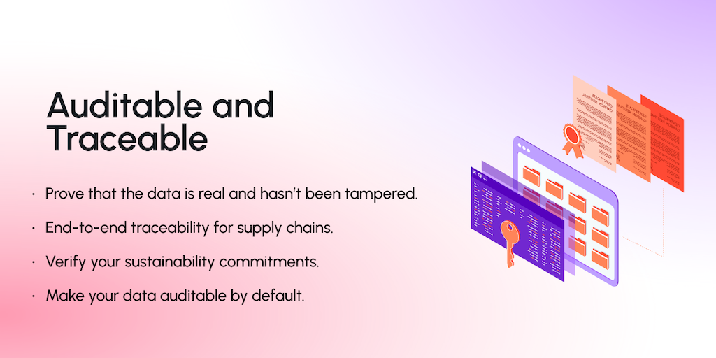 Cedalio helps you build apps with information that is auditable by default. Data used in your app can be traced back to its origin for verification, and even more, you can give your users real ownersh