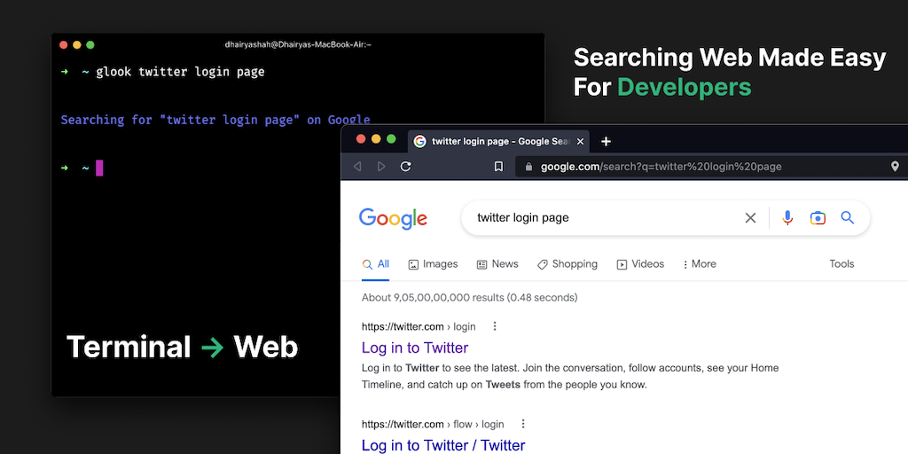From random thoughts to informative topics, search the web directly from the terminal. Very helpful to users who have a good bonding with the terminal) We welcome you to use glook. See you at the term