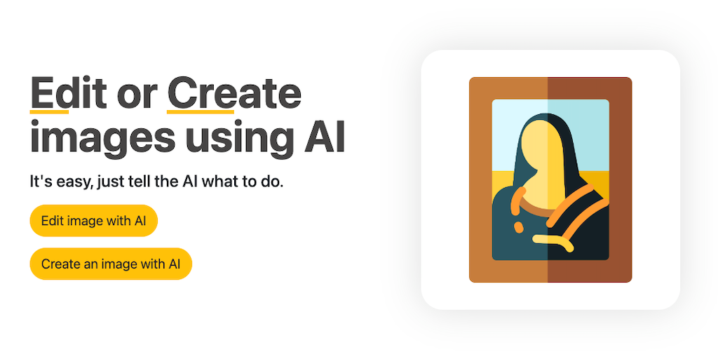 Edit your images using AI or make images using AI. It's easy, just tell the AI what to do.