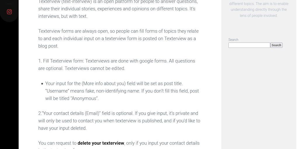 Texterview is an open text interview platform for people to answer questions, share their stories, experiences and opinions on different topics. The aim is to enable understanding directly through the