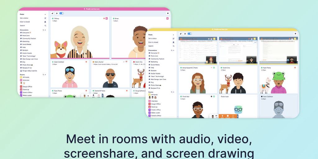 Pesto - Digital workplace with a variety of rooms and avatars | Product Hunt