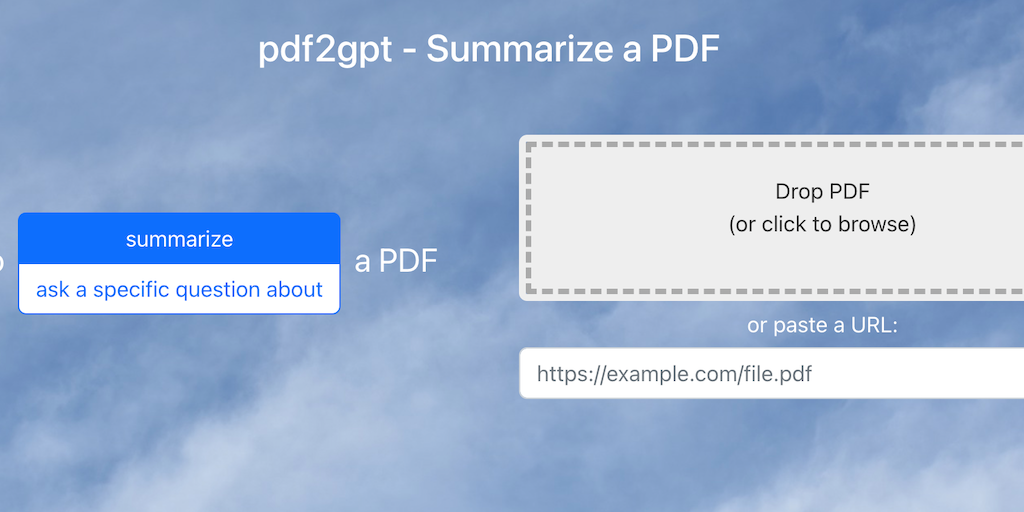 A simple tool automatically break PDFs into chunks so they fit into the GPT context limit. Get a summary or ask a specific question about the PDF content.