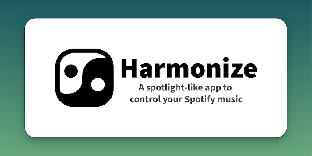 Harmonize is a macOS spotlight-like search tool that allows users to quickly search/interact with Spotify, without having to switch to the Spotify app.