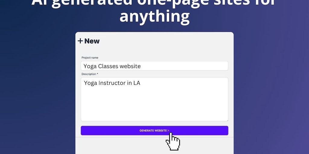 🤖 Generate relevant one-page websites 💬 Chat with the website for updates like "make bg color red" 🔄 Regenerate blocks and keep versions ✍️ Edit your texts and images 🌐 Publish your website with a sho