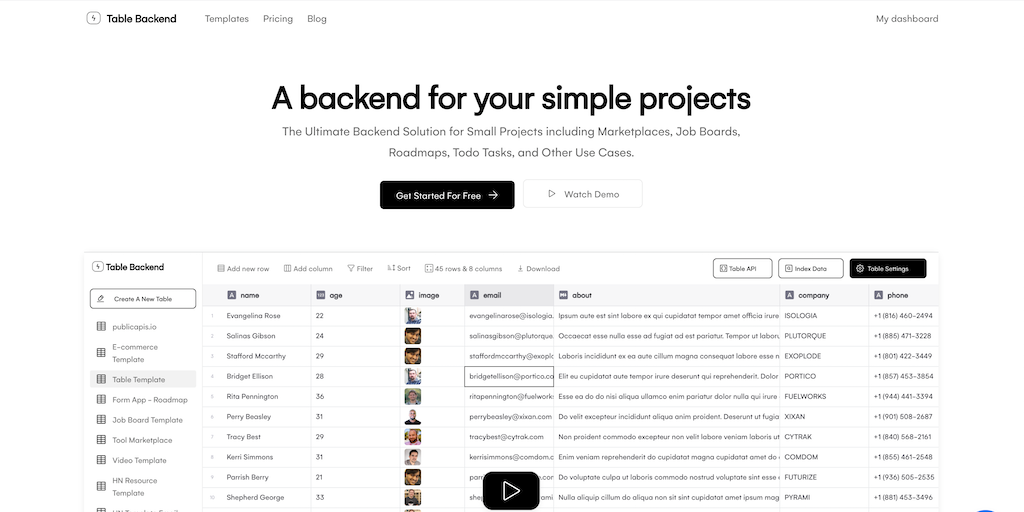 Table Backend is a user-friendly and powerful tool designed specifically for small projects like marketplaces, job boards, roadmaps, todo tasks, and more.