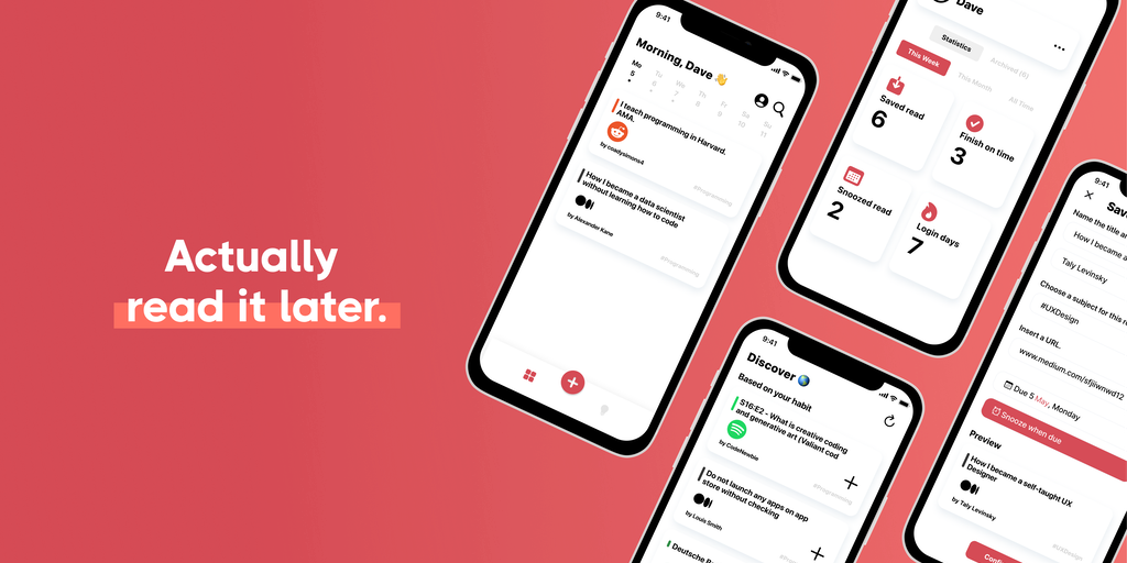 Savvy is the app to help you actually 'read it later'. Save anything like a Python tutorial or an interesting Twitter thread, we remind you to read it. Also with features like statistics, personalised