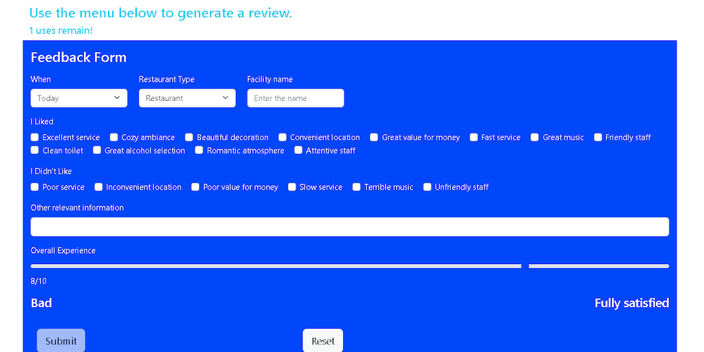 The Restaurant Review - Generates reviews the easy way | Product Hunt