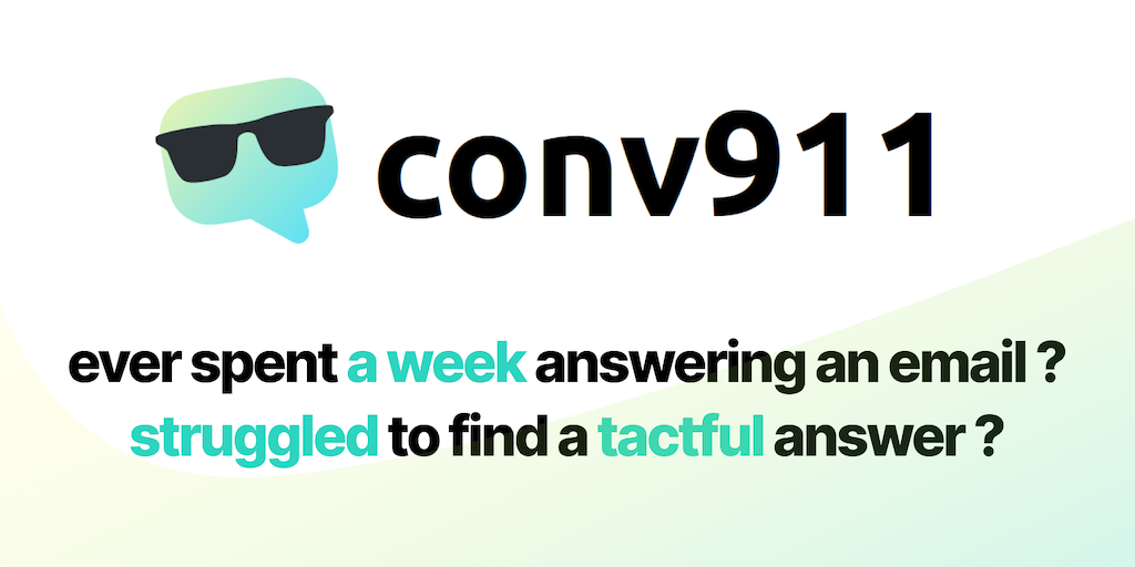 conv911 is a social-media platform to improve at texting. you can post text conversations, and others will help you answer the best. use-cases includes answering your boss, an awkward colleague, manag