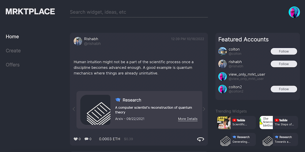 MRKTPLACE - A place for thinkers to post and trade meaningful ideas | Product Hunt