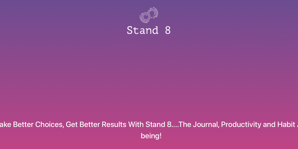 Build Awareness, Make Better Choices, Get Better Results With Stand 8....The Journal, Productivity and Habit App focused on well-being!