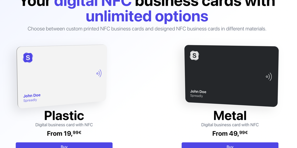 Spreadly is a tool that enables you to create dynamic, digital business cards. Get a physical NFC card or add a QR code to Apple wallet to allow others to easily check out your links and add you to th