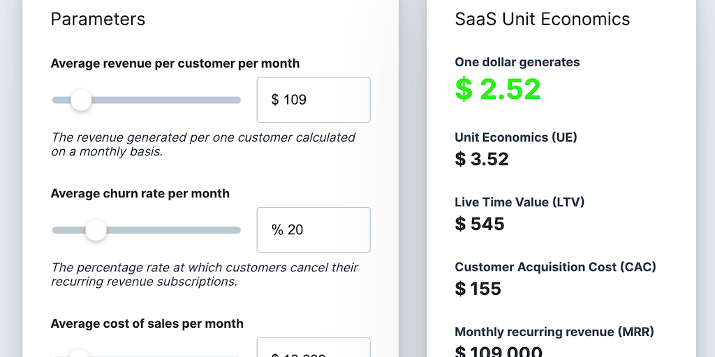 SaaS Calculator - Calculate SaaS Metrics, MRR, LTV, CAC, One Dolar Generates | Product Hunt