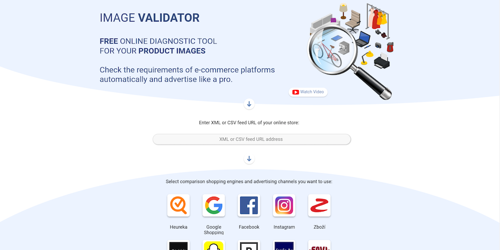 Image validator is a free diagnostic web tool for online sellers. It detects issues in your product images and sends you a report within 24 hours. Identify missing images, low quality photos, unsuppor