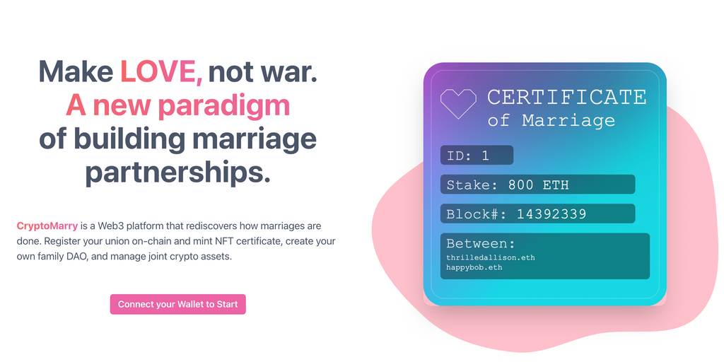 CryptoMarry - A new paradigm of building marriage partnerships | Product Hunt