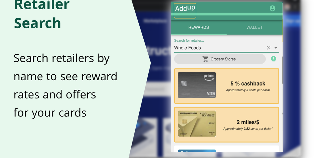 While you shop online, AddUp notifies you of opportunities to earn rewards on your credit cards. With brand new features and streamlined user experience, maximizing credit card rewards is simpler than