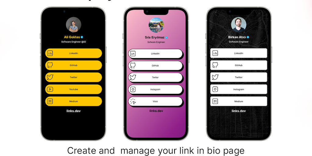 Simplify your online presence with https://links.dev Add all your links to one page, customize the design, and update your links from your GitHub repository. Get an easy-to-remember, nice-looking URL.