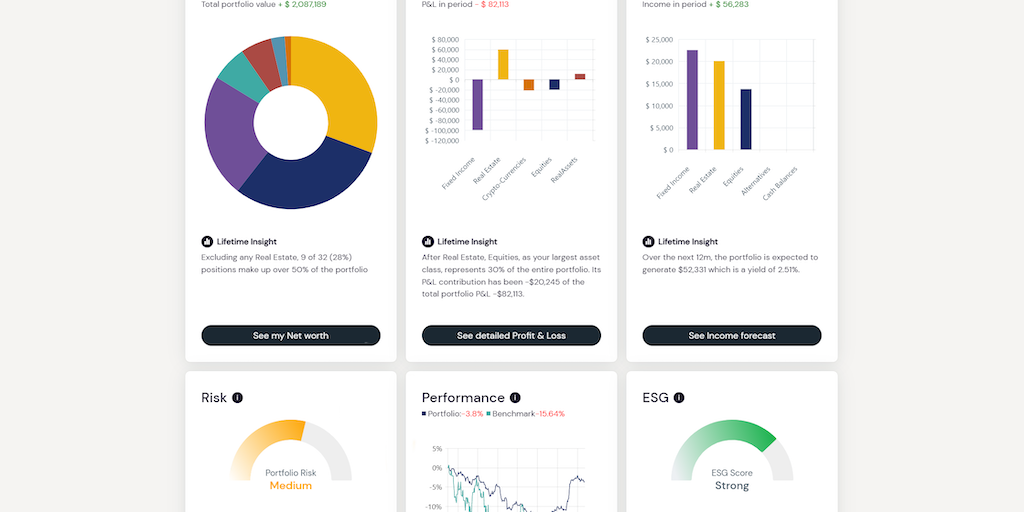 illio allows you to aggregate listed, unlisted and digital assets. Then, using an algorithm based on our 30 years of financial expertise, we condense what you need to know about your portfolio and fla