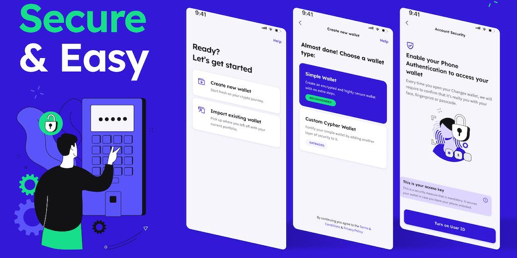 Changex is a fully non-custodial, highly-secure, multi-chain DeFi crypto wallet which lets you easily buy, hold, swap, and transfer a diverse set of coins and tokens on different blockchains.
