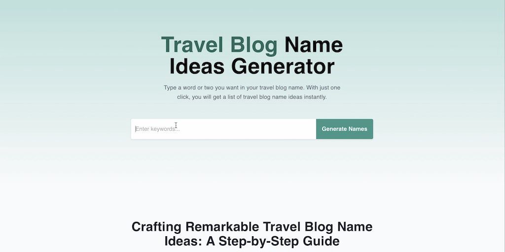 Travel Blog Name Ideas Generator - Generate travel blog names instantly & check availability! | Product Hunt