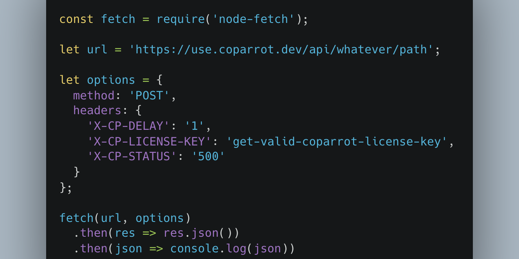 Coparrot is a web service that will return a response with data you specified. It's a mock server that you can use during development or testing without installing anything and without writing any con