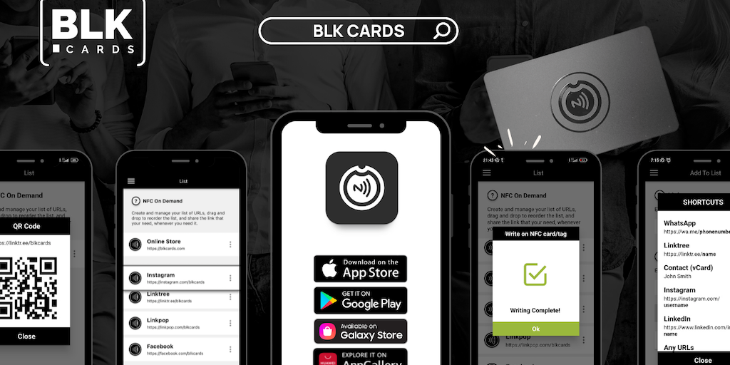 BLK CARDS is a free App (Android & iOS) that lets you share your digital life (vCard, WhatsApp, website, social media, podcasts, videos, channels, playlists, NTFs…) in real life interactions in just a