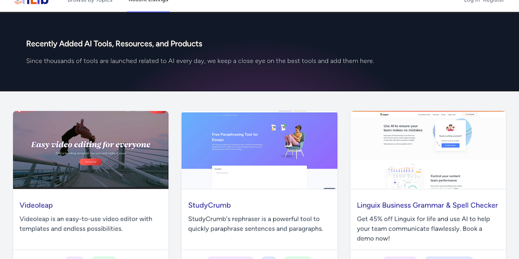 iLib.com is the largest AI Tools directory with more than 4500 tools, courses, apps, and other resources. Apart from searching keywords, You can browse AI resources by use cases, latest submissions, e