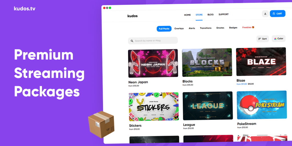 kudos.tv is a go-to place for streamers and content creators to get professional graphic assets. Explore the extensive collection of free and premium stream overlays, alerts, emotes, and much more.