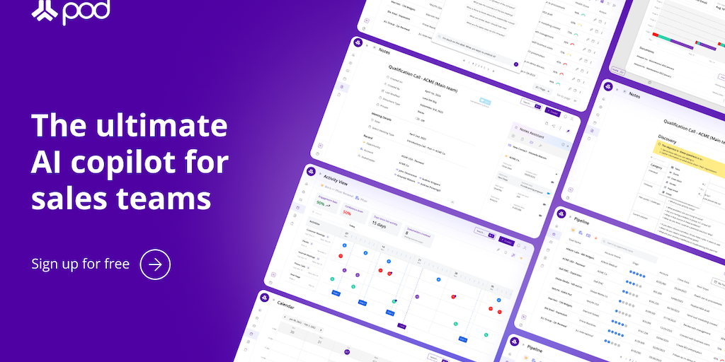 Pod is the ultimate AI workspace for sellers! Pod recommends sales plays, summarizes relevant knowledge about your deals, generates personalized emails, and automates data entry. Manage your pipeline