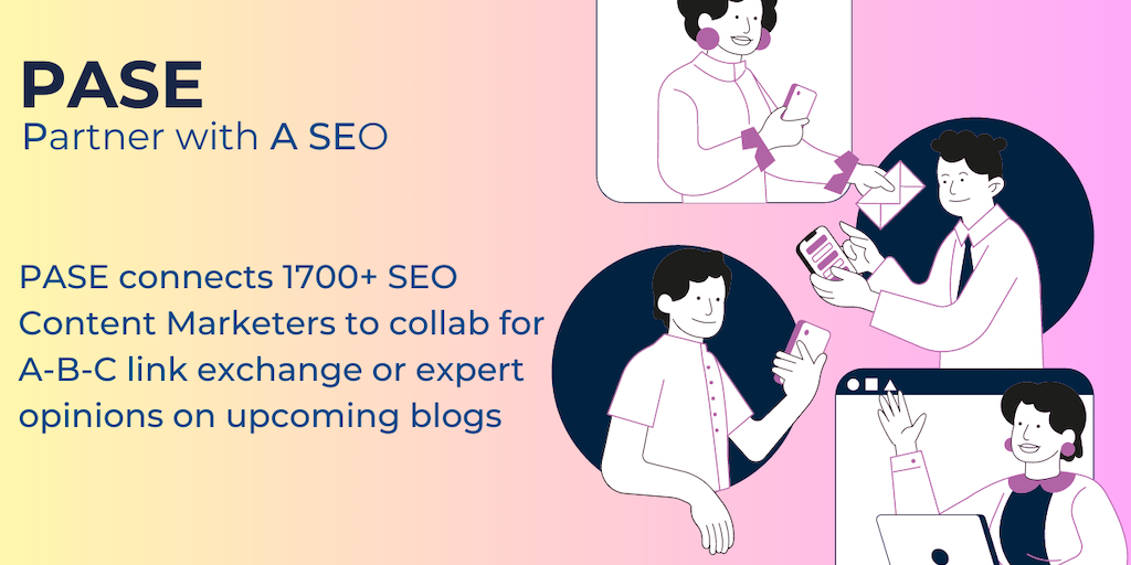 PASE connects 1700+ SEO Content Marketers for A-B-C link exchange or Expert Opinions/Comments on Upcoming blogs. It is similar to HARO but with more types of partnership & collaboration opportunities