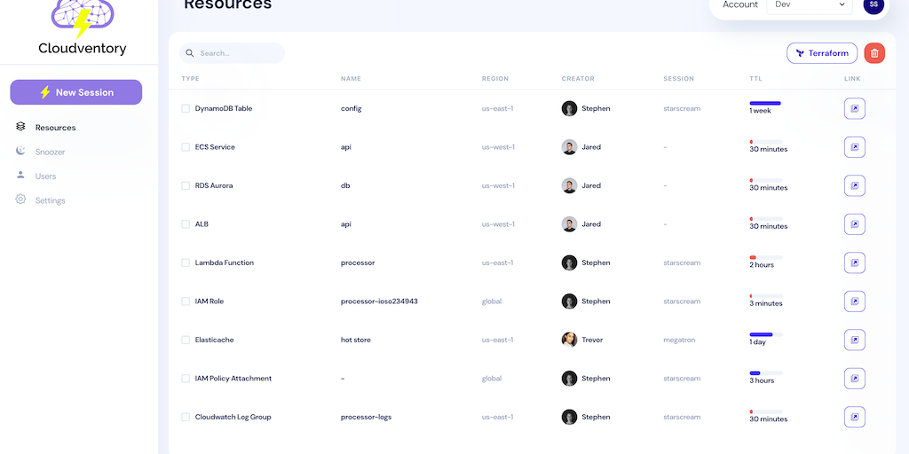 Cloudventory saves you money by turning off resources when not using them and helps you move faster writing the Terraform for you!