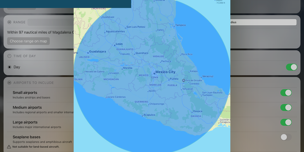 Jourza generates random flight plans based on your criteria, such as range, time of day, and airport size. Tweak your flight by re-rolling the arrival or departure airport, then export your flight pla