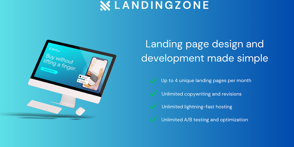 LandingZone offers landing page design and development services for a flat monthly fee. Subscriptions also include: - Unlimited copywriting and revisions - Unlimited hosting - CRM & tracking integrati
