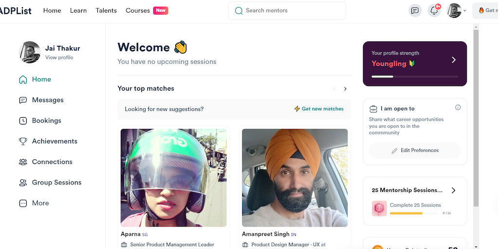 If you’re looking for advice, jamming or networking - ADPList lets you freely schedule a 1:1 mentorship session in fun new ways and work with them directly. I benefited from it immensely when I came a