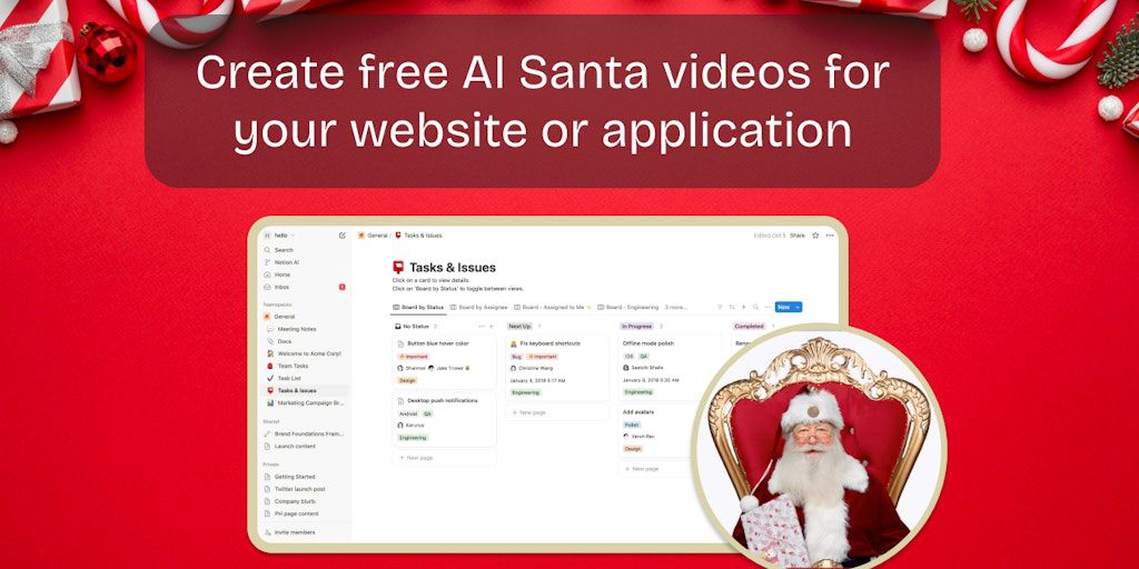 Transform your screen recordings into AI Santa videos in seconds. No editing skills required—just record, apply Santa mode, and let AI handle the rest. Make fun personalised videos for your website or